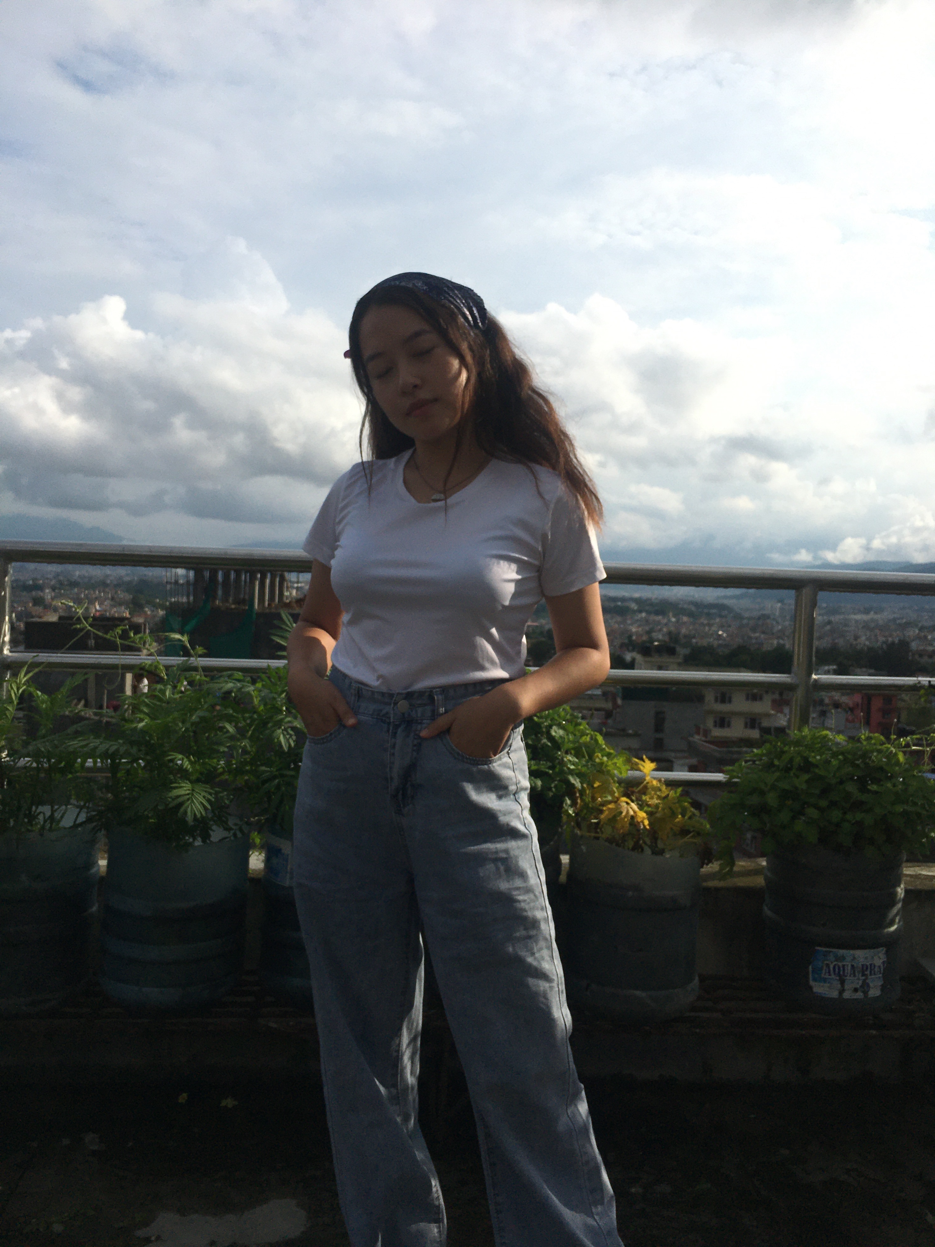 With wide denim jeans, you can make the look more casual. It sends a relaxed go to watch the sunset in my T and jeans with converse mood. I did a braid on my hair and wore it with white converse.